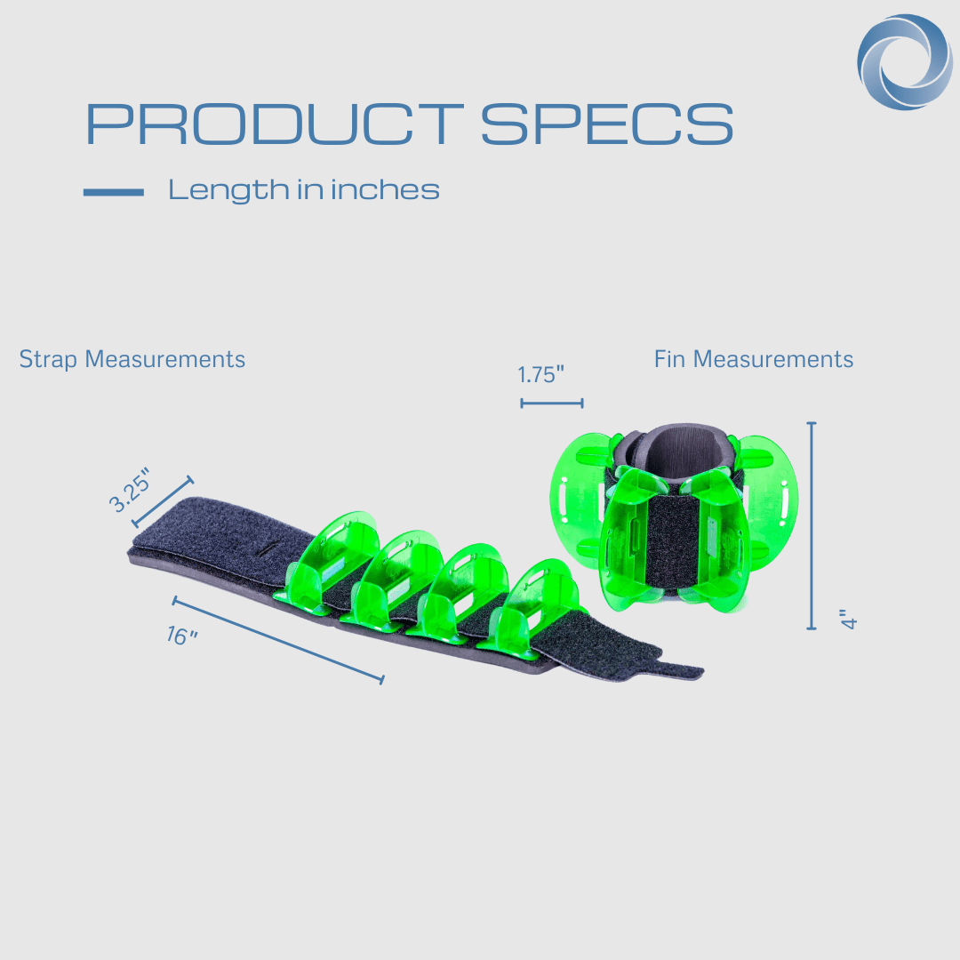 High Speed Green Hybrid Fins (4″ Blades) – The Green Fins provide the least resistance.  They are recommended for the de-conditioned or those recovering from surgery on knees or hips or total joint replacement. Alternatively they can also be used for advanced “fast twitch” muscle and high-speed training. Cardio warm-up and conditioning also accelerate accommodation to pool temperatures and added movement challenges.