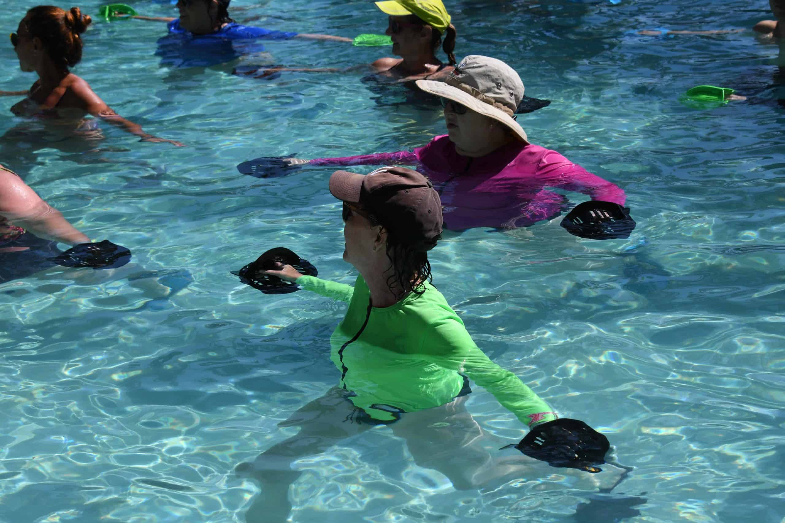 - Hand held omni-directional resistance training with these modern aquatic handbells.