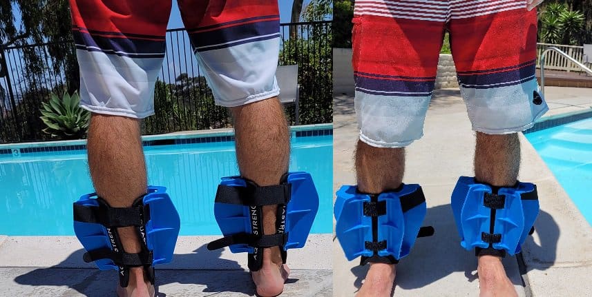 I have been going to PT for lower back and they use the blue hand ones for many of the exercises I do. Several of the leg exercises I had to try and do while using a small noodle. I ordered this set and took the legs one to therapy yesterday. The therapist loved them and is going to order for her patients. I used them and what a work out. Much more resistance than I had been getting. So happy with my purchase. I have a pool myself, so when therapy is over I can continue at home. Expensive but well made and if it helps my back…..well worth the price. Arrived faster than expected so that is a plus too.