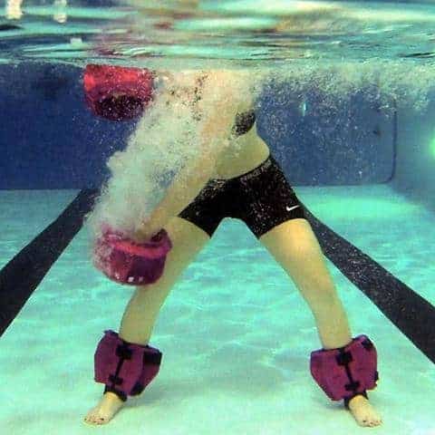 High Speed Bells or Fins – Allow the user to do fast tempo water workouts moving the arms and legs through the water at rapid speed to ignite the small fast twitch muscles for explosive power and speed. The bells and fins also engage the neuromuscular connection for better balance, coordination, athletic performance and injury recovery.